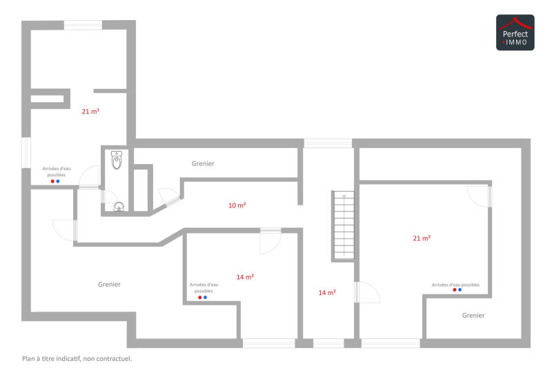 | - Hall de nuit : 24 m² - Chambre 2 : 21 m² (salle d’eau possible) - Chambre 3 : 14 m² - Chambre 4 : 12 + 9 m² (salle d’eau possible) - WC : 2 m² | |||